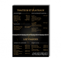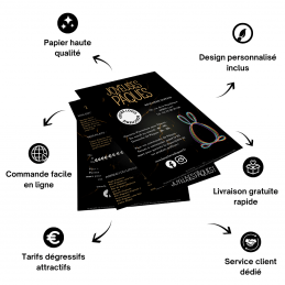 Mettez en avant vos services, offres et horaires avec nos affiches sur-mesure, 100 % personnalisables. Que ce soit pour annoncer des promotions exclusives, des colis festifs ou des offres spéciales pour les fêtes pascales, notre affiche vous offre une impression professionnelle pour un résultat de qualité. - - Une fois votre commande finalisée, notre...